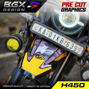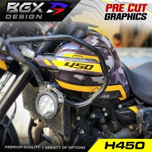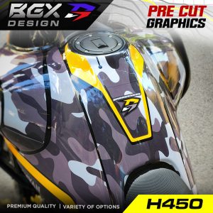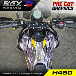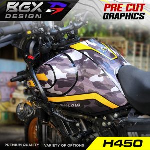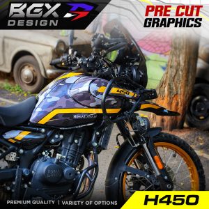 – Since this is a pre cut graphic kit, each piece is meant to align to a particular body panel. There will be 5-20 mm gaps between individual pieces when it comes together. The gaps are intentional for areas with a complex surface. The 450 Himalayan Tank has unique curves and bends so the GAPS between pieces in this kit is relatively larger. The decal pieces for the front and rear fender of the 450 Himalayan have also been kept slightly smaller for ease of access during installation. - Due to the above factors, we advise you to choose a color scheme that best matches your bike’s base color. The color names we have used are based on the Himalayan color names to make it easier for understanding the best match.