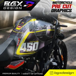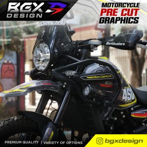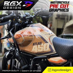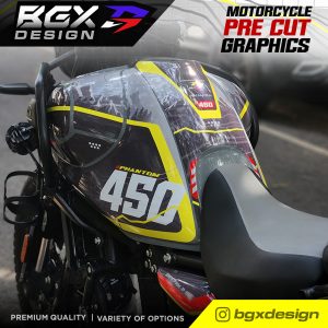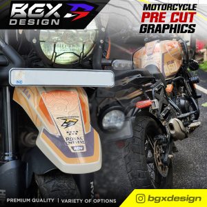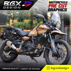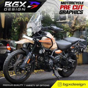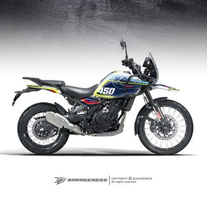 – Since this is a pre cut graphic kit, each piece is meant to align to a particular body panel. There will be 5-20 mm gaps between individual pieces when it comes together. The gaps are intentional for areas with a complex surface. The 450 Himalayan Tank has unique curves and bends so the GAPS between pieces in this kit is relatively larger. The decal pieces for the front and rear fender of the 450 Himalayan have also been kept slightly smaller for ease of access during installation. - Due to the above factors, we advise you to choose a color scheme that best matches your bike’s base color. The color names we have used are based on the Himalayan color names to make it easier for understanding the best match.